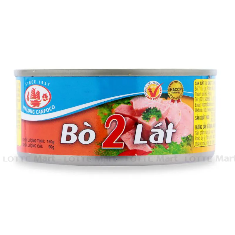Bò 2 lát Halong Canfoco hộp 150g là sản phẩm chọn lựa từ những nguyên liệu hoàn toàn tự nhiên đặc biệt là thịt bò và thịt heo tươi ngon. Sản phẩm còn được hòa quyện cùng những loại nguyên liệu tự nhiên khác như dầu thực vật, chất chiết xuất từ rau quả, muối... đảm bảo an toàn cho người sử dụng.