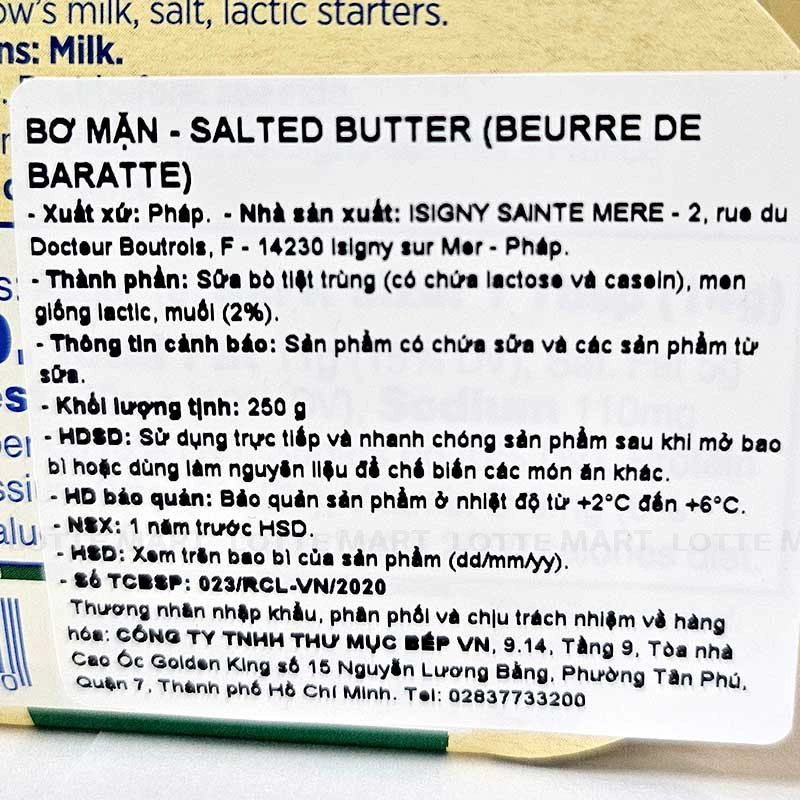 - Ngoài hương vị tuyệt vời, bơ mặn Isigny còn là nguồn dinh dưỡng giá trị với hàm lượng chất béo cao chất lượng.