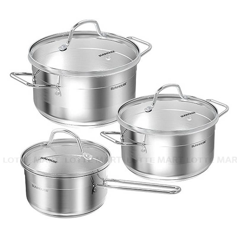 Bộ 3 Nồi Đáy Từ 5 Lớp Sunhouse Inox SHG669