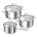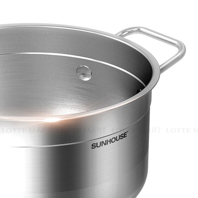 Bộ 3 Nồi Đáy Từ 5 Lớp Sunhouse Inox với chất liệu inox 430, nhôm, và inox 304 giúp truyền nhiệt đều, giữ nhiệt tốt và tiết kiệm năng lượng.