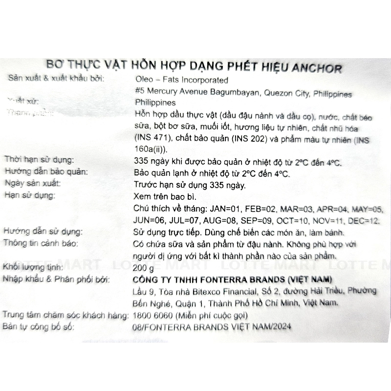 Bơ Thực Vật Mặn Hỗn Hợp Dạng Phết Anchor 200G
