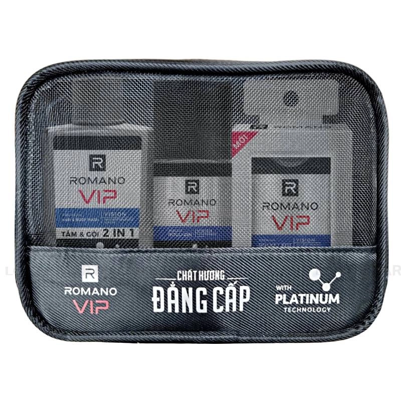 - Bộ Sản Phẩm Du Lịch Romano VIP Vision là sản phẩm tiện lợi cho những chuyến đi xa của bạn, mang mùi hương Vision tinh tế cuốn hút, giúp phái nam luôn tự tin, mạnh mẽ.