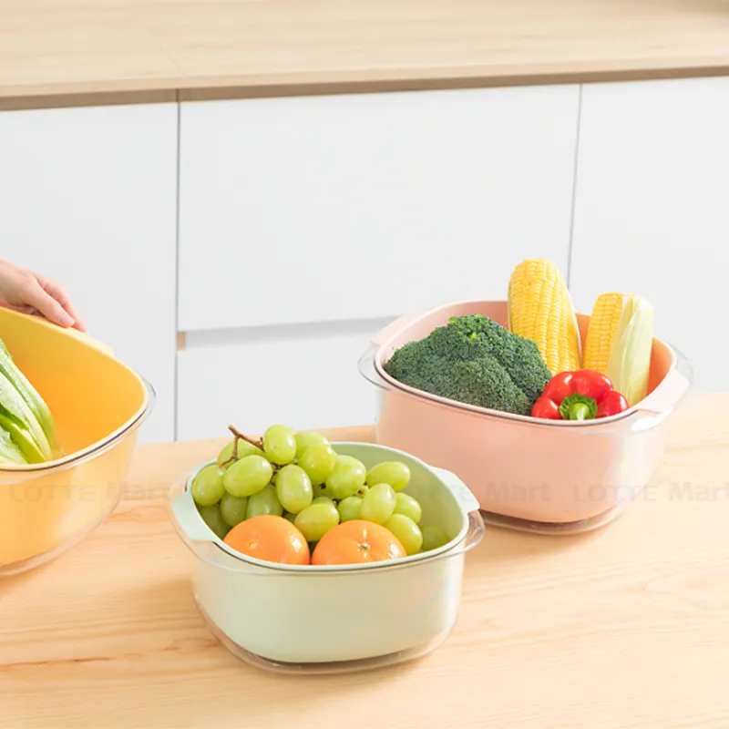 - Tiện dụng: Rổ có lỗ thoát nước được phân bố đều, giúp thoát nước nhanh, dễ vệ sinh, dễ sử dụng. Thiết kế hai lớp có thể tách biệt, lớp trên thoát nước, lớp dưới đựng thực phẩm.