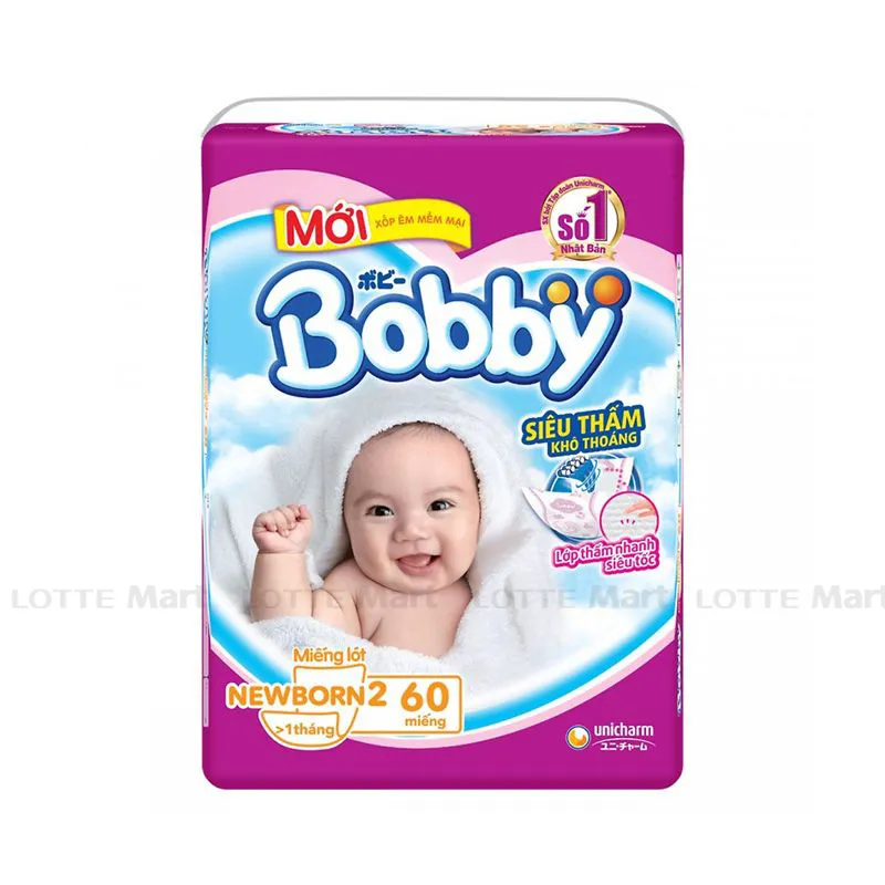 Miếng Lót Sơ Sinh Bobby Fresh Newborn 2 Gói 60 Miếng (Bé Trên 1 Tháng) với ứng dụng công nghệ từ Tập đoàn Unicharm (Nhật Bản), là miếng lót nổi bật được thiết kế riêng biệt bảo vệ vùng rốn bé sơ sinh. Và còn giúp giữ cho làn da bé luôm êm mềm và khô thoáng.