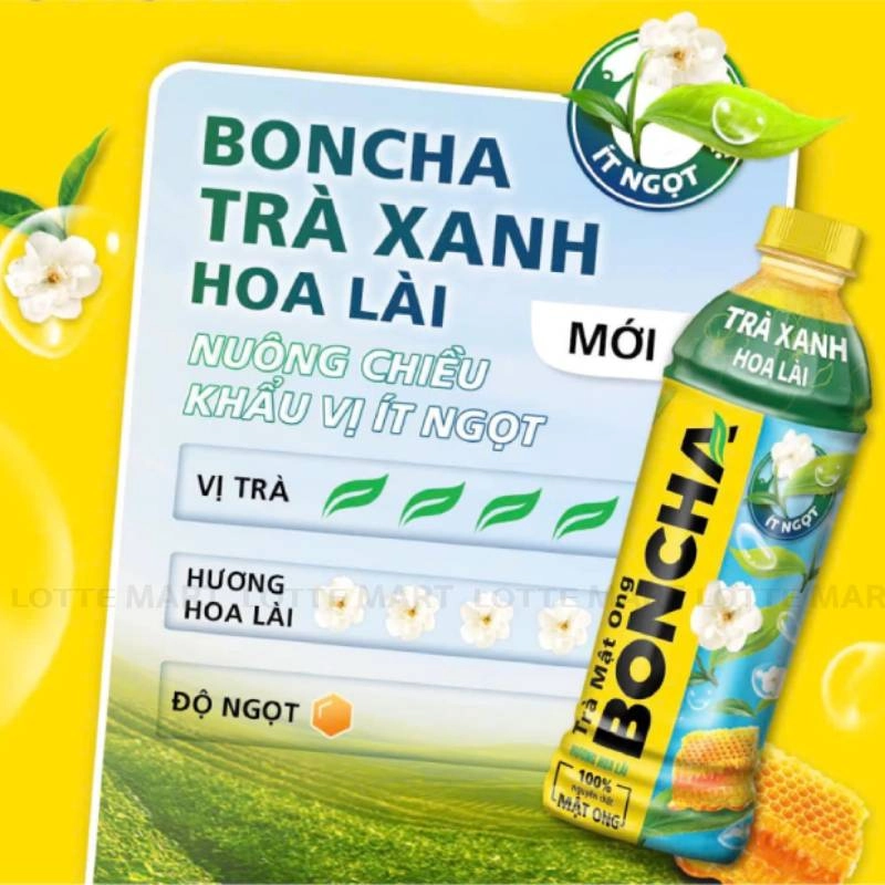 - Trà Mật Ong BONCHA Hương Hoa Lài mang đến một trải nghiệm thưởng thức trà độc đáo, hòa quyện giữa vị ngọt tự nhiên của mật ong và hương thơm dịu nhẹ của hoa lài. Sản phẩm mang lại sự thanh mát, ngon miệng cho người dùng.