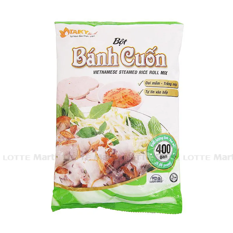Bột Bánh Cuốn Tài Ký với sản phẩm có thành phần từ bột gạo tự nhiên, rất an toàn và bổ dưỡng. Bột có đặc tính dẻo, dai, màu trắng tự nhiên. Bột bánh cuốn khi chế biến cho bánh trắng tinh, thịt mềm và hương vị thơm ngon, hấp dẫn. -Sản phẩm được sản xuất trên quy trình công nghệ hiện đại, được kiểm duyệt chặt chẽ, đảm bảo chất lượng. Thành phần: Bột gạo và bột năng. Dùng làm bánh cuốn. Bảo quản nơi khô ráo, thoáng mát và tránh ánh nắng mặt trời.