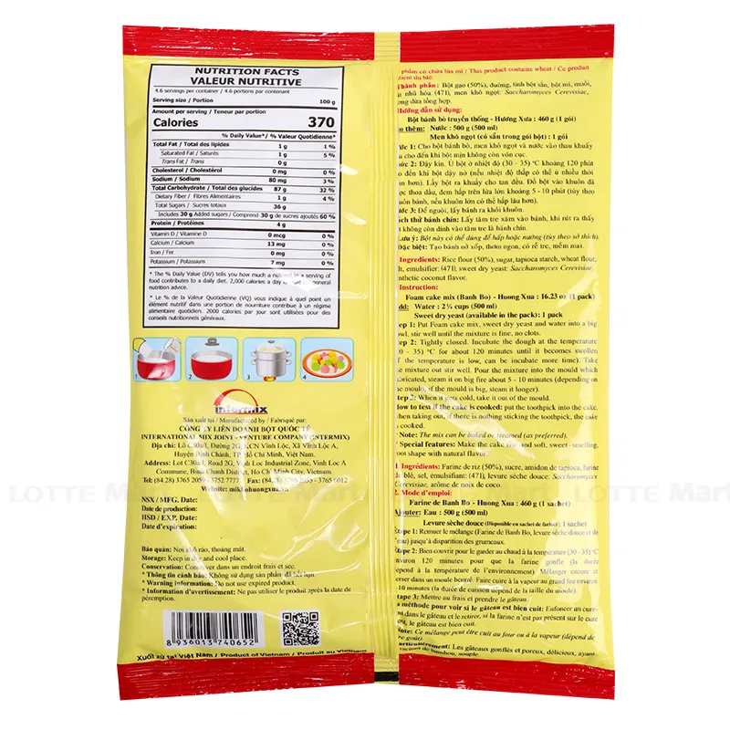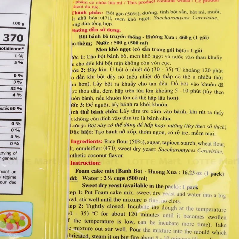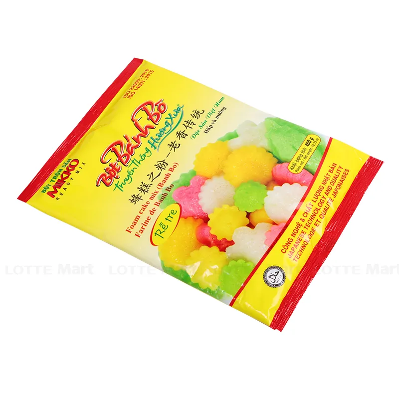 Bột Bánh Bò Mikko được sản xuất từ 100% nguyên liệu tự nhiên theo công nghệ hiện đại, cả quy trình diễn ra khép kín dưới sự giám sát và kiểm tra nghiêm ngặt của các chuyên gia thực phẩm nổi bật, đảm bảo an toàn cho sức khỏe người tiêu dùng. Thành phần: Tinh bột bắp, đường, bột mì, muối…Công dụng: Dùng để làm bánh bò. Bảo quản ở nơi khô thoáng, tránh ánh nắng trực tiếp.