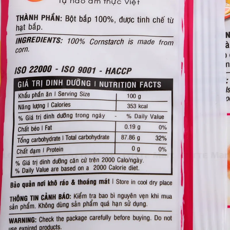 Bột bắp Tài Ký được sản xuất theo công nghệ hiện đại với thành phần hoàn toàn tự nhiên của hạt bắp, tạo nên chất lượng tuyệt vời cho sản phẩm. Thành phần: Bắp được tinh chế từ hạt bắp. Công dụng: Được dùng trong chế biến các món ăn.