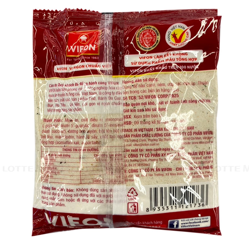 Bột Canh Vifon là sản phẩm hòa quyện giữa các gia vị cơ bản cùng tỏi, ớt, tiêu và hành lá sấy khô, mang đến hương vị đậm đà đặc trưng cho mọi món ăn.