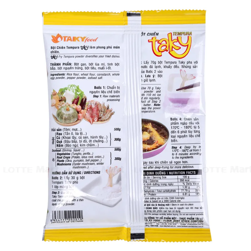 Bột lúa mì (93,45%), tinh bột bắp (4%), muối, tiêu, chất tạo xốp (500ii); chất điều vị (621)