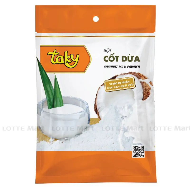 Bột Cốt Dừa Taky 50G được sản xuất bằng công nghệ sấy phun nước cốt dừa nguyên chất.