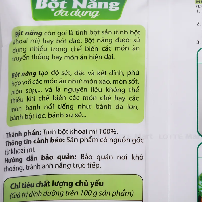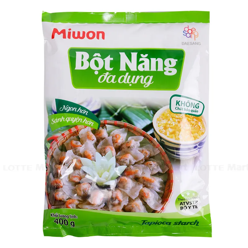 Bột Năng Đa Dụng Miwon có độ khô mịn hảo hạng, không vón cục. Thành phần: 100% tinh bột khoai mì. Công dụng: Dùng trong chế biến các món ăn. Bảo quản ở nơi khô thoáng, tránh ánh nắng trực tiếp.