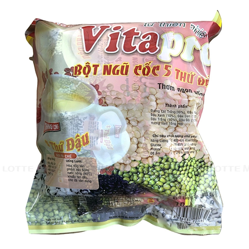 Bột ngũ cốc kết hợp 5 loại đậu dinh dưỡng gồm đậu nành, đậu xanh, đậu đen, đậu trắng, đậu đỏ.