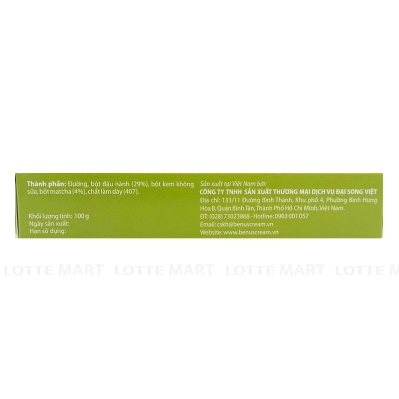 - Đường, bột đậu nành (29%), bột kem không sữa, bột matcha (4%), chất làm dày (407).
