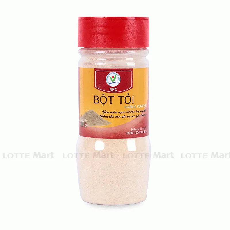 Bột Tỏi NFC Hũ 65G- Bột tỏi nguyên chất, sản xuất từ nguyên liệu sạch được trồng Theo Tiêu Chuẩn Viet_GAP. không chứa chất bảo quản, không chất tẩy trắng, không chứa thành phần hóa học. Thành phần: bột tỏi.Công dụng: Làm gia vị chế biến các món ăn. Bảo quản ở nơi khô thoáng, tránh ánh nắng trực tiếp.