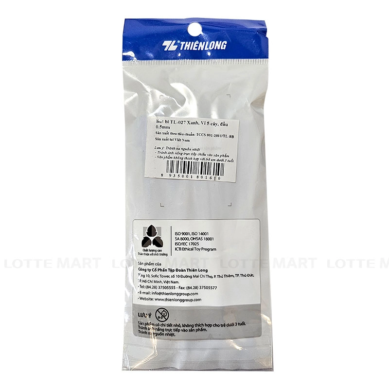 Vỉ 5 Cây Bút Bi Thiên Long TL027 Mực Xanh