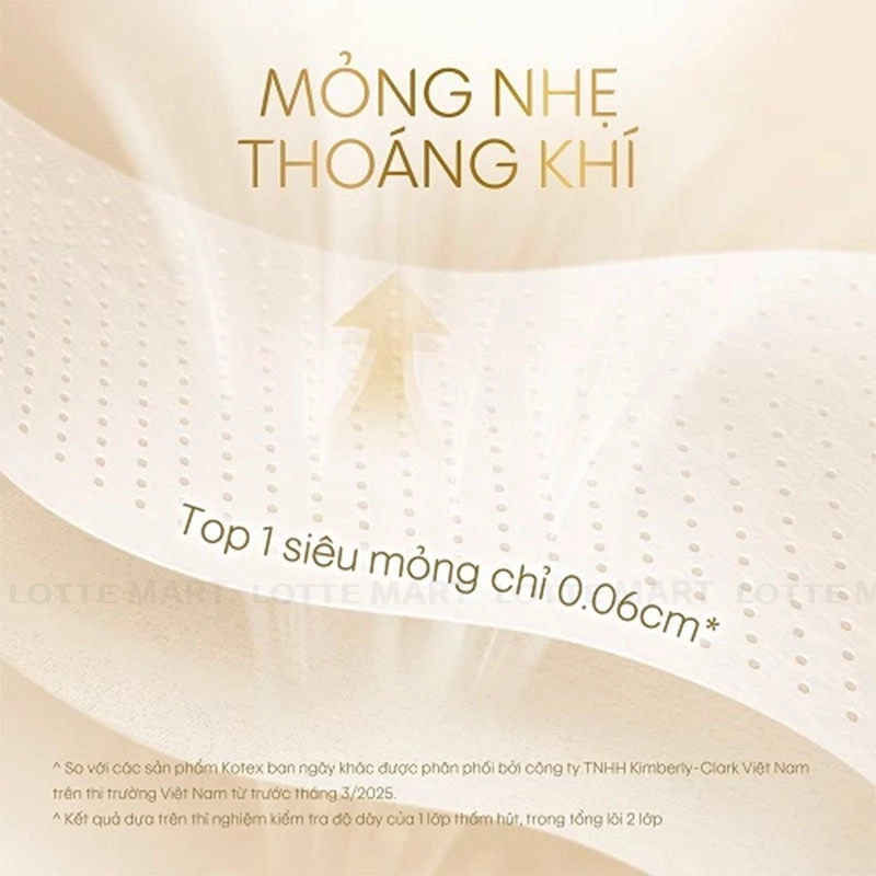 Miếng băng vệ sinh được thiết kế siêu mỏng nhẹ thoáng khí với độ dày chỉ 0.06cm cho cảm giác thoải mái khi ngủ.