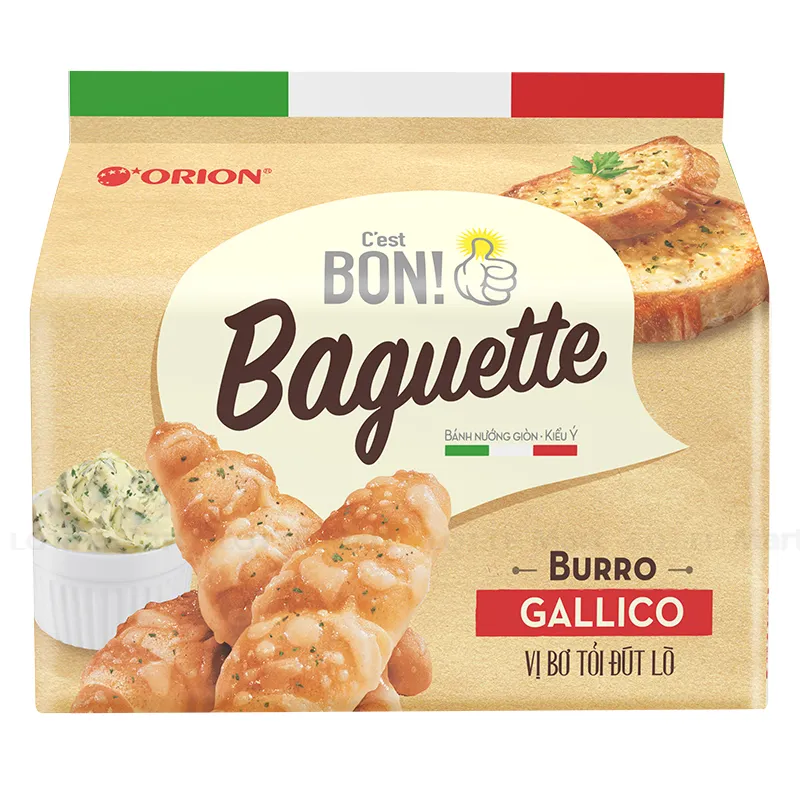 - Bánh Baguette Mì C'est Bon Vị Bơ Tỏi Đút Lò lấy cảm hứng từ bánh mì châu Âu, sản phẩm nổi bật với 3 hình dạng bánh mì mini độc đáo và hương vị bơ tỏi đút lò hấp dẫn.