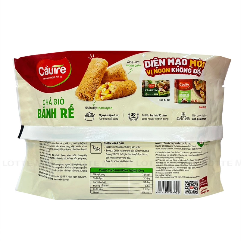 Chả giò rế chay đặc biệt Cầu Tre được sản xuất trên quy trình hiện đại, đạt tiêu chuẩn vệ sinh an toàn thực phẩm. Nguyên liệu được lựa chọn kỹ lưỡng, an toàn cho sức khỏe, mang đến sự an tâm cho người dùng.
