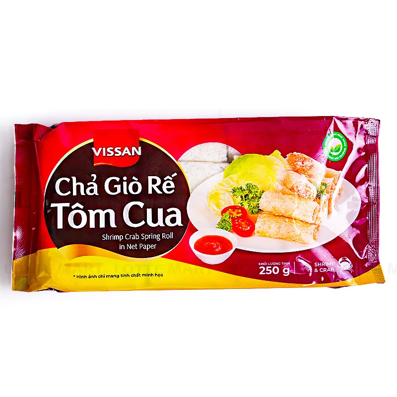 Chả giò rế tôm cua Vissan được lấy từ nguồn thịt sạch, tươi ngon, sản xuất theo công nghệ hiện đại, mọi khâu từ tuyển chọn nguyên liệu tới chế biến, đóng bao bì đều diễn ra khép kín dưới sự giám sát và kiểm tra nghiêm ngặt. Sản phẩm được sơ chế và bảo quản theo tiêu chuẩn vệ sinh an toàn thực phẩm
