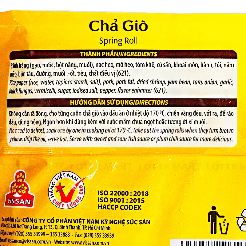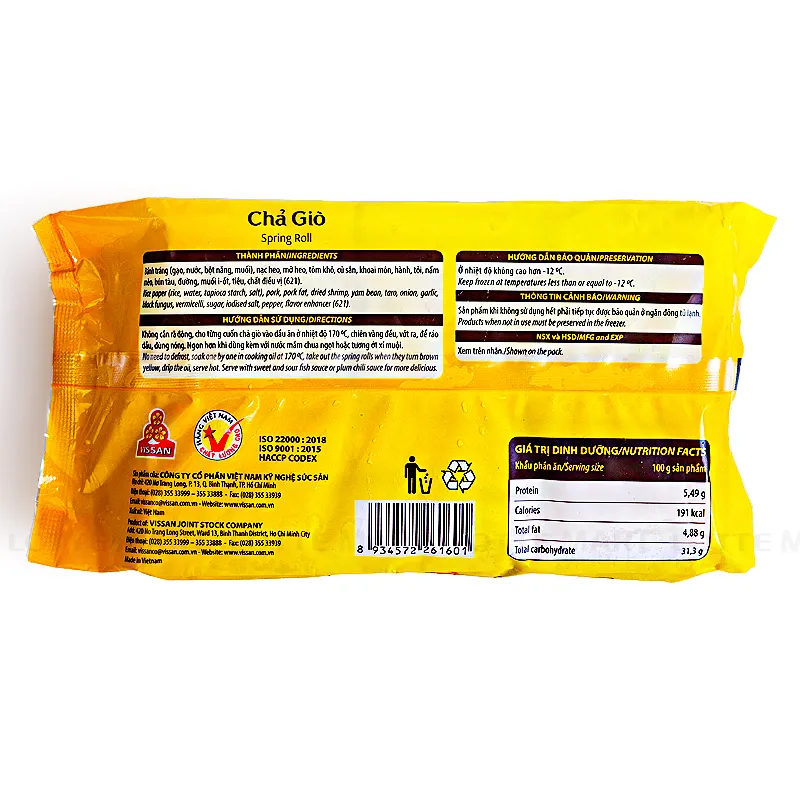 Chả giò thịt Vissan 500g là sản phẩm đến từ thương hiệu Vissan, được sản xuất tại Việt Nam, đảm bảo an toàn cho người dùng.