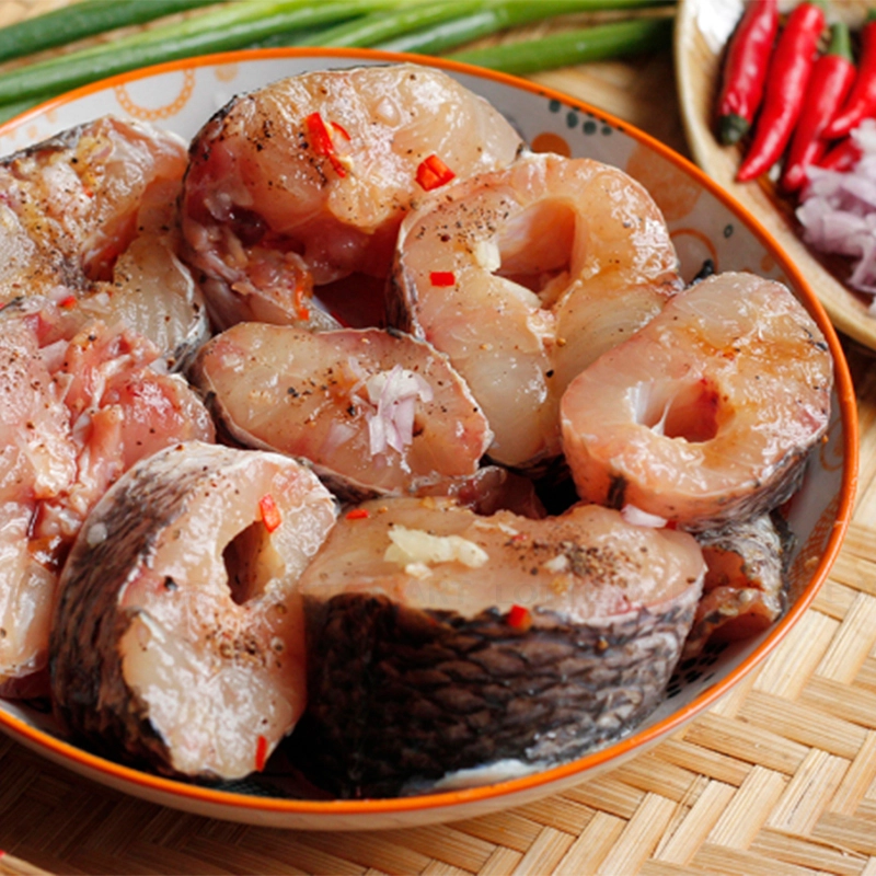 Sản phẩm đã được sơ chế và tẩm ướp sẵn, chỉ cần nấu chín là có ngay món cá kho tộ thơm ngon, tiện lợi cho bữa cơm gia đình.