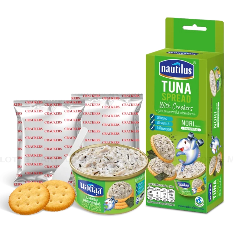 - Cá Ngừ Vị Tảo Biển Phết Bánh Quy Nautilus mang đến sự kết hợp độc đáo giữa bánh quy giòn tan và cá ngừ không chỉ tiện lợi mà còn rất dễ dàng để thưởng thức ngay khi mở hộp. Bạn chỉ cần phết cá ngừ lên chiếc bánh quy, tạo nên một món ăn vặt hấp dẫn, đầy dinh dưỡng mà không cần chế biến cầu kỳ.
