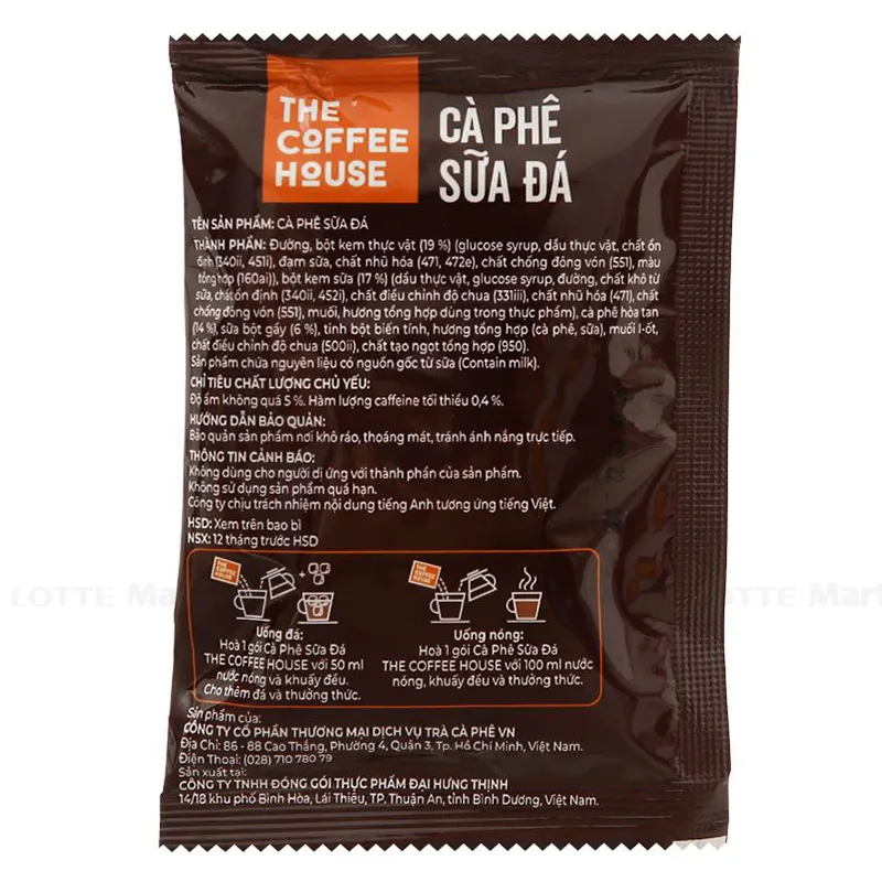 Hướng dẫn sử dụng: Uống nóng - Hoà 1 gói cà phê sữa đá hoà tan với 100ml nước nóng, khuấy đều và thưởng thức. Uống đá - Hoà 01 gói cà phê sữa đá hoà tan với 50ml nước nóng và khuấy đều. Cho thêm 100gr đá và thưởng thức.