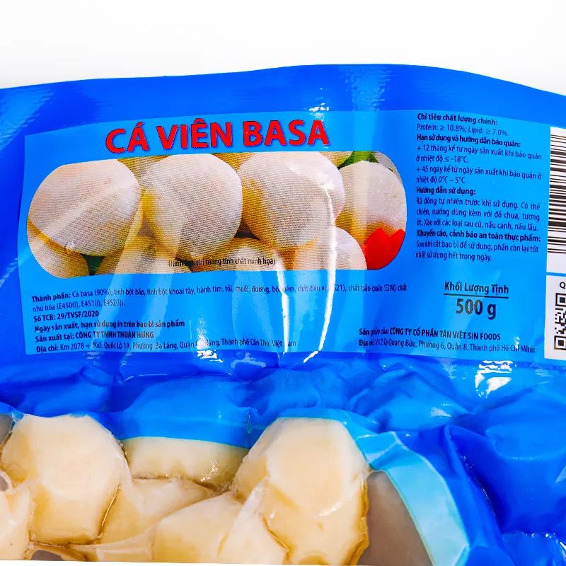 Cá Viên Basa Tân Việt Sin 500G được sơ chế và chế biến an toàn, từ khâu chọn nguyên liệu đến khi đóng gói đều hợp vệ sinh. Sản phẩm còn được đóng gói hút chân không giúp bảo vệ sản phẩm một cách hiệu quả.