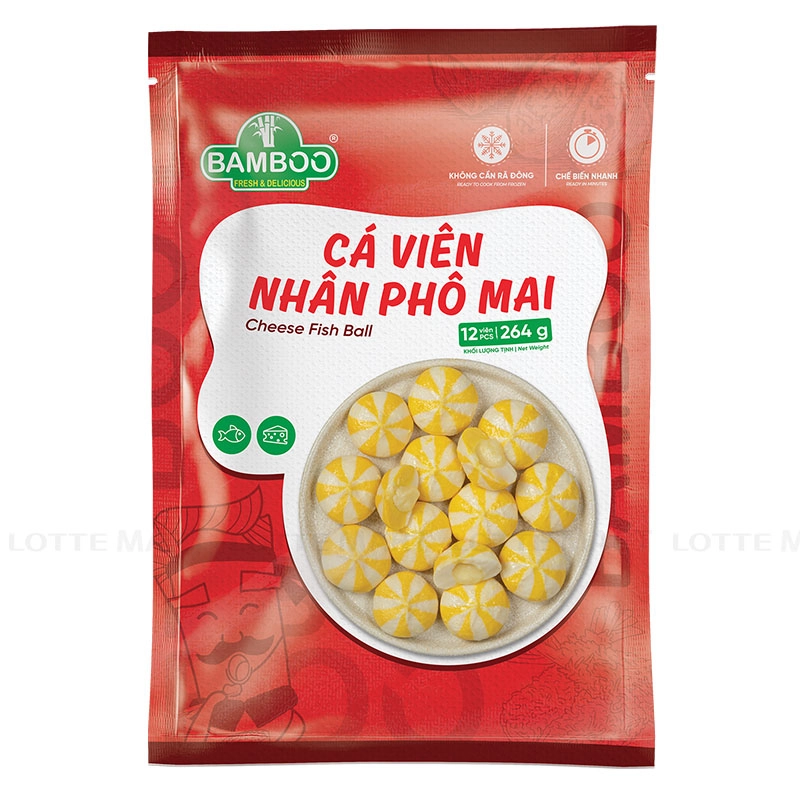 - Cá Viên Nhân Phô Mai Bamboo là sản phẩm tiện lợi kết hợp giữa vị ngọt tự nhiên của cá và hương thơm béo nhẹ của phô mai tan chảy bên trong.