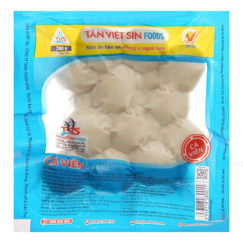 Cá viên Tân Việt Sin được chế biến từ nguồn nguyên liệu thịt cá tươi ngon, sản xuất trên dây chuyền công nghệ hiện đại khép kín. Sản phẩm là sự kết hợp hoàn hảo của thịt cá, surimi xay nhuyễn và các gia vị như muối, đường, hạt tiêu… đem đến cho người tiêu dùng hương vị tươi ngon, đậm đà, rất vừa miệng. Quy trình chế biến sản phẩm tuân thủ nghiêm ngặt các tiêu chuẩn về vệ sinh an toàn thực phẩm, đem đến cho người tiêu dùng sản phẩm chất lượng, tốt cho sức khỏe.