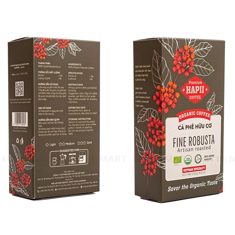 Cà Phê Rang Xay Hữu Cơ Hapii Coffee Fine Robusta Hộp 250G