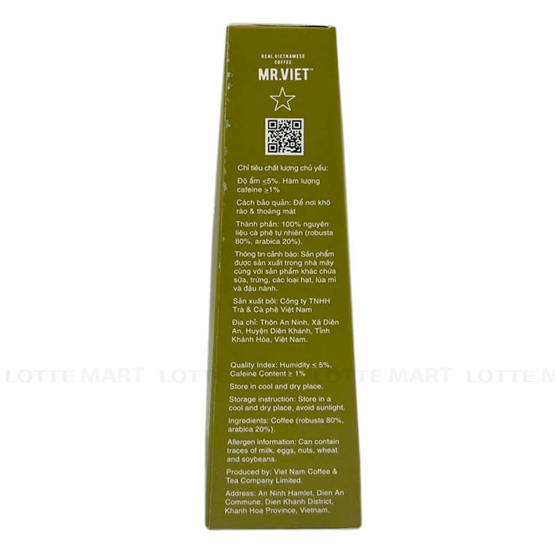 - Cà Phê MR.VIET Star Kèm Phin 250G được chế biến từ những hạt cà phê Arabica và Robusta chọn lọc, cùng với quy trình rang tỉ mỉ để giữ lại hương vị đậm đà và mùi thơm nồng nàn.