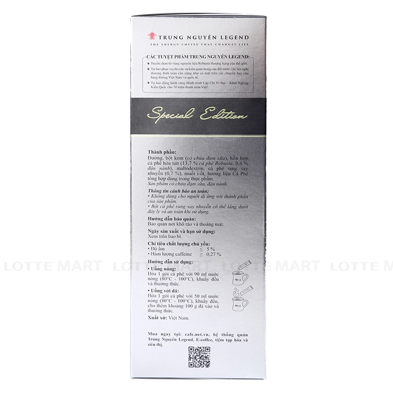 - Cà Phê Trung Nguyên Legend Special 25G (Hộp 18 Gói) mang đến sự tiện lợi cho người sử dụng, giúp những người yêu thích cà phê sữa có được một món nước uống như ý mà vẫn tiết kiệm được thời gian.