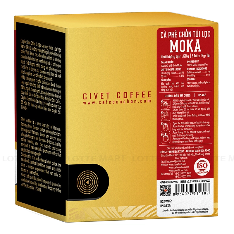Thành phần: 100% cà phê chồn Moka.