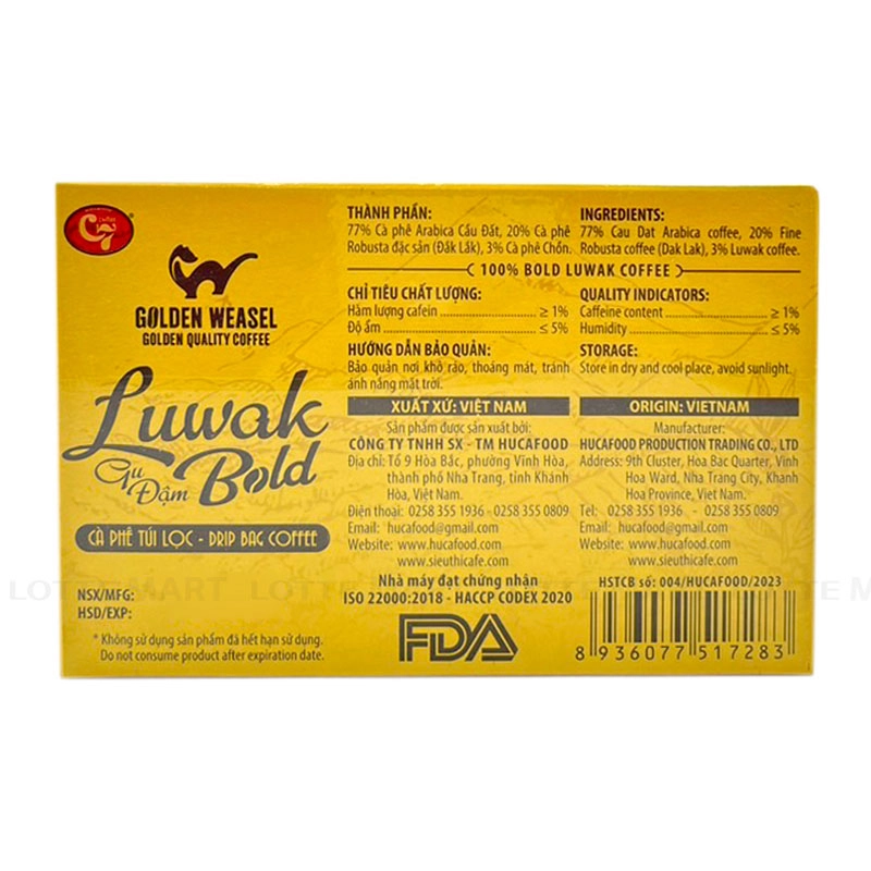 Cà Phê Túi Lọc Con Chồn Vàng Luwak Gu Đậm Hộp 8 Gói x 10G