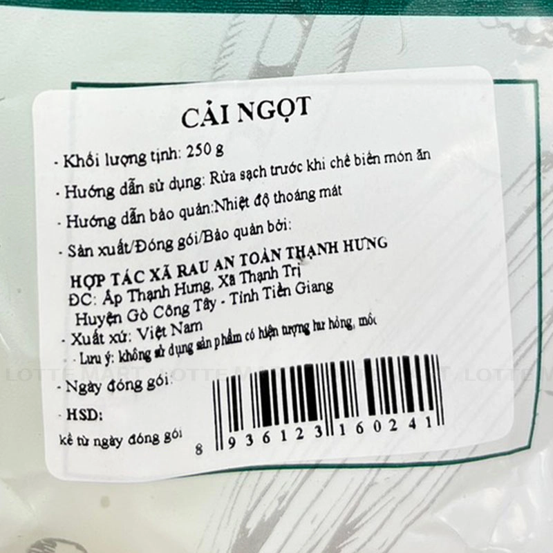 - Cải ngọt được trồng và thu hoạch đảm bảo chất lượng và an toàn vệ sinh thực phẩm.