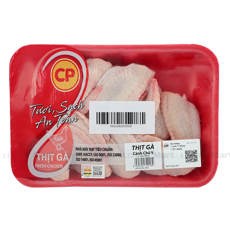Cánh Gà Chữ V là phần cánh nguyên vẹn gồm cánh giữa và đầu cánh, tạo thành hình chữ V đẹp mắt, giữ trọn vẹn kết cấu tự nhiên.