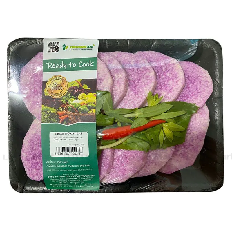 Khoai Mỡ Cắt Lát Trường An Khay 300g được sơ chế, bào sạch và đóng khay tiện dụng, cho người nội trợ dễ dàng chế biến món hỗn hợp su su cà rốt xào mà không tốn quá nhiều thời gian.