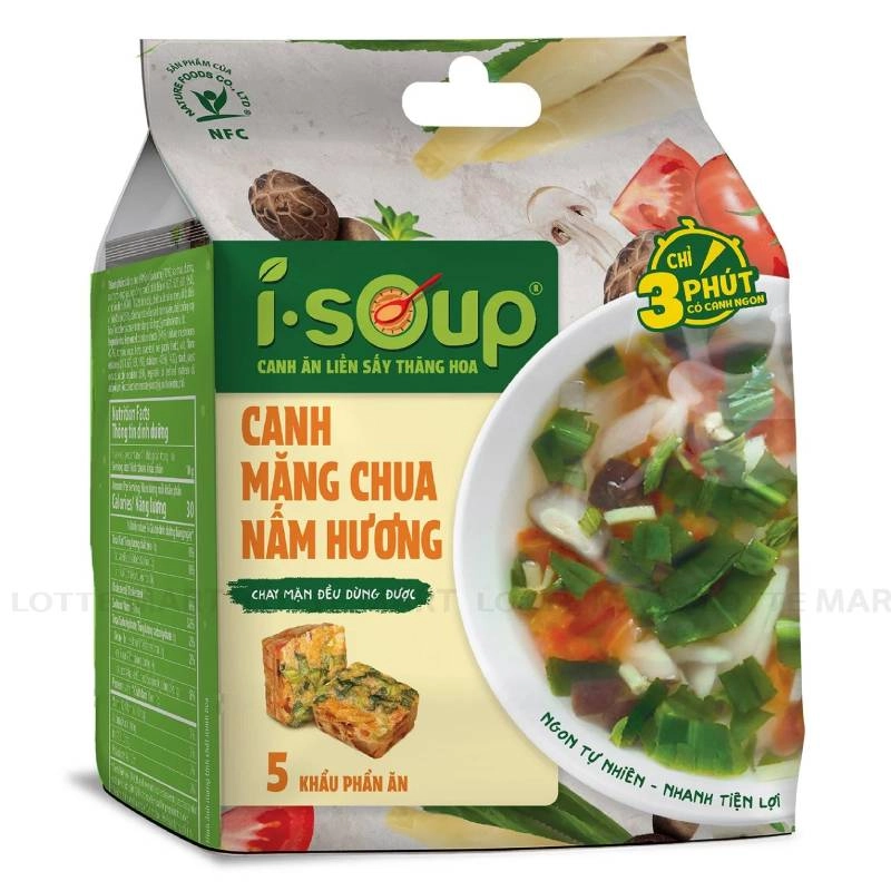 - Canh Ăn Liền I-Soup Măng Chua Nấm Hương được áp dụng công nghệ sấy thăng hoa Nhật Bản giúp giữ trọn giá trị dinh dưỡng.