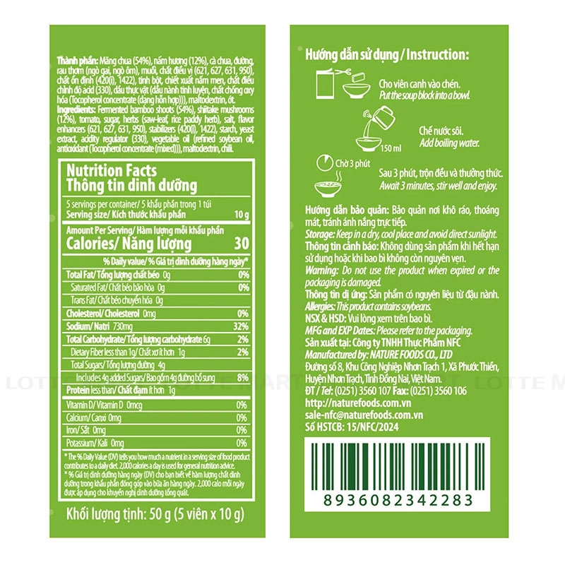 - Mỗi viên canh được đóng trong một túi màng nhôm giúp giữ chất lượng sản phẩm, nhỏ gọn, dễ dàng sử dụng và mang theo mọi lúc, mọi nơi.