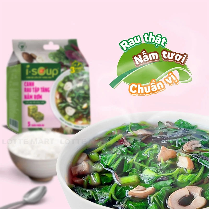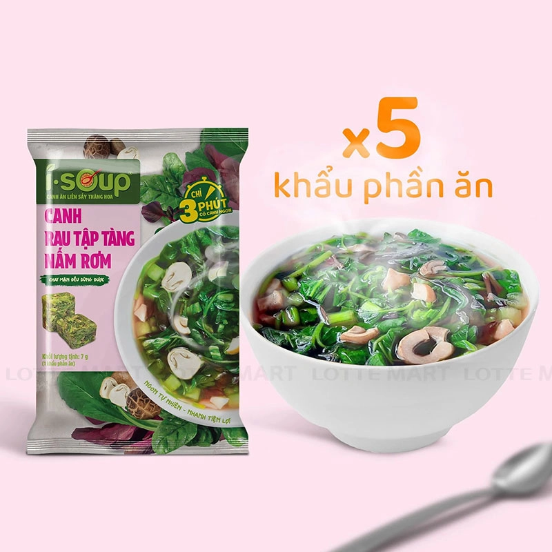 - Canh Ăn Liền I-Soup Rau Tập Tàng Nấm Rơm được áp dụng công nghệ sấy thăng hoa Nhật Bản giúp giữ trọn giá trị dinh dưỡng.