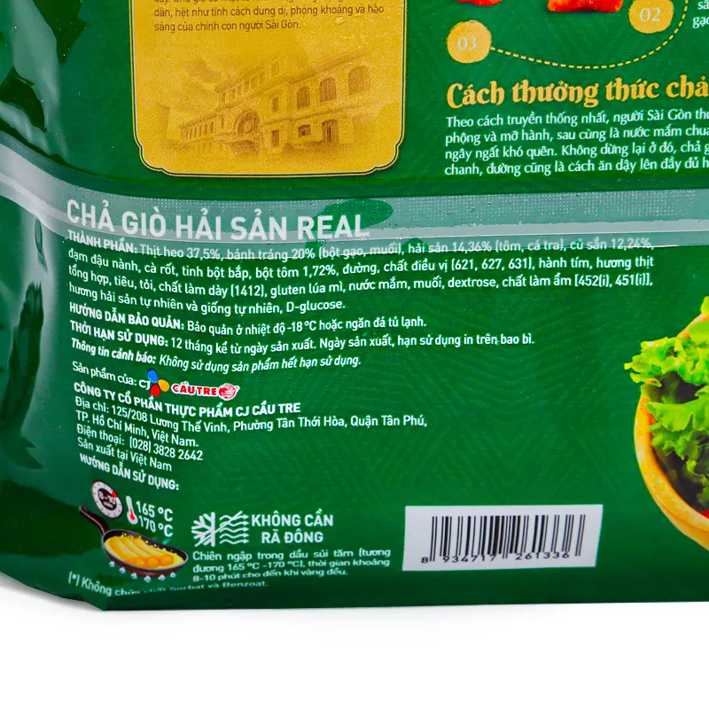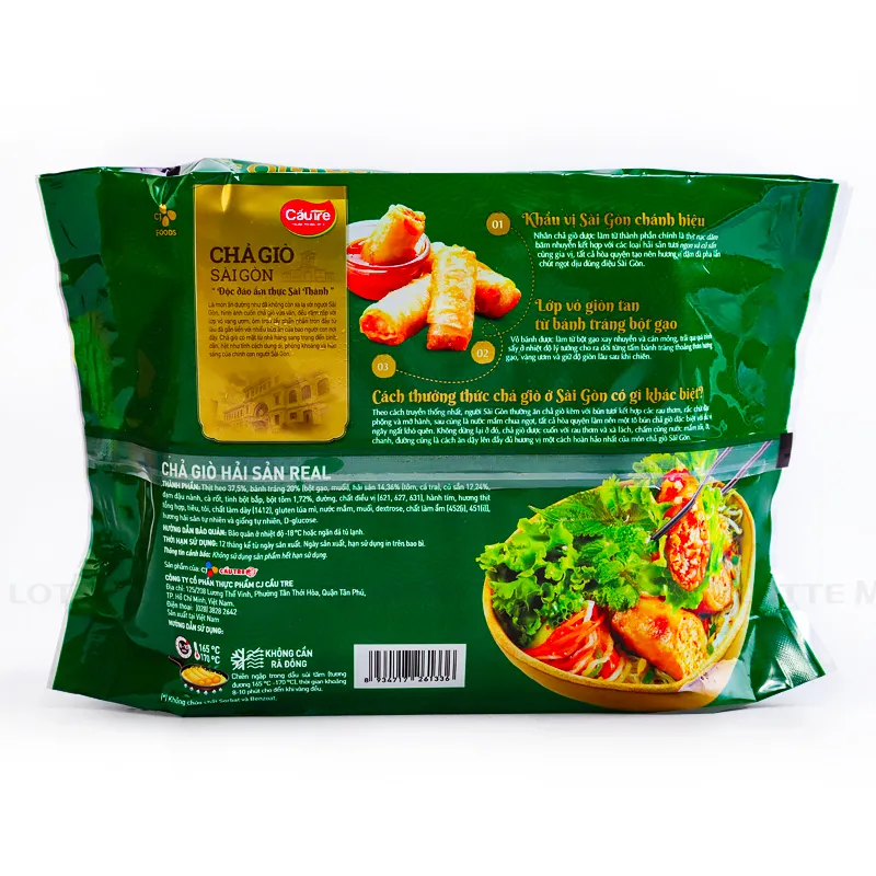 Chả Giò Real Hải Sản Cầu Tre được lấy từ nguồn hải sản sạch, tươi ngon, sản xuất theo công nghệ hiện đại, mọi khâu từ tuyển chọn nguyên liệu tới chế biến, đóng bao bì đều diễn ra khép kín dưới sự giám sát và kiểm tra nghiêm ngặt.