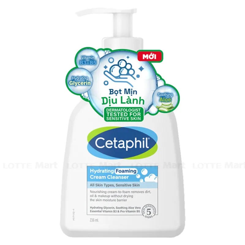 Sữa Rửa Mặt Cetaphil Tạo Bọt Dịu Lành Cho Da Nhạy Cảm dạng kem tạo bọt mịn, giúp làm sạch mà không gây khô da. Sản phẩm được chứng minh lâm sàng giúp loại bỏ bụi bẩn, dầu làm tắc lỗ chân lông.