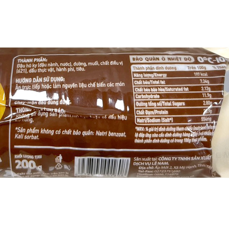 - Đậu hũ ky (đậu nành, nước), đường, muối, chất điều vị (621), dầu thực vật, hành phi, tiêu.