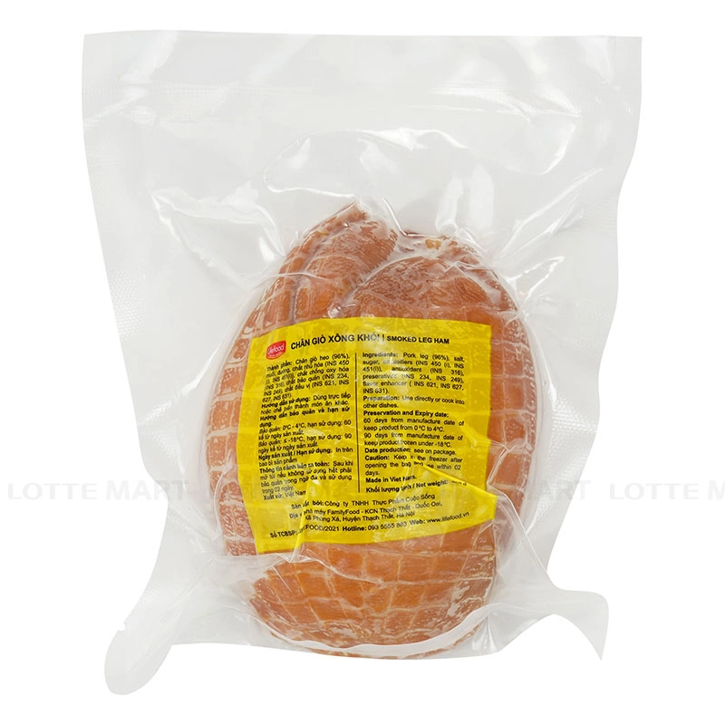 Món chân giò xông khói là khoái khẩu của cả gia đình nhưng để làm được món này, cách chế biến khá phức tạp, nay đã được Lifefood chế biến sẵn rất tiện dụng. Bạn chỉ cần mở túi, cắt lát và sử dụng ngay hoặc làm nóng với lò vi sóng. Sản phẩm được chế biến từ nhà máy thực phẩm Lifefood với dây chuyền khép kín, hiện đại và chuẩn vệ sinh an toàn thực phẩm. Đảm bảo đến tay khách hàng những sản phẩm có chất lượng và giá thành . Sản phẩm được đựng trực tiếp trong bao bì PA là loại bao bì chuyên