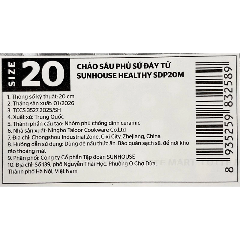 Chảo Chống Dính Nano Đáy Từ Sunhouse SDP20M 20cm