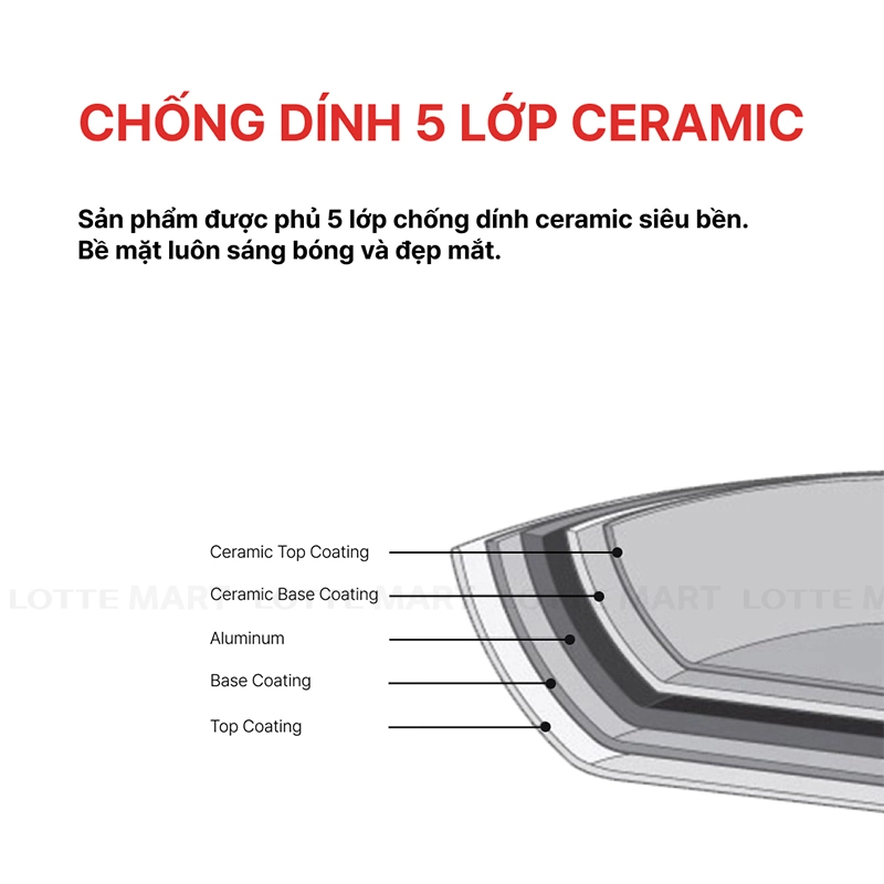 - Lòng chảo được phủ 5 lớp chống dính Ceramic.