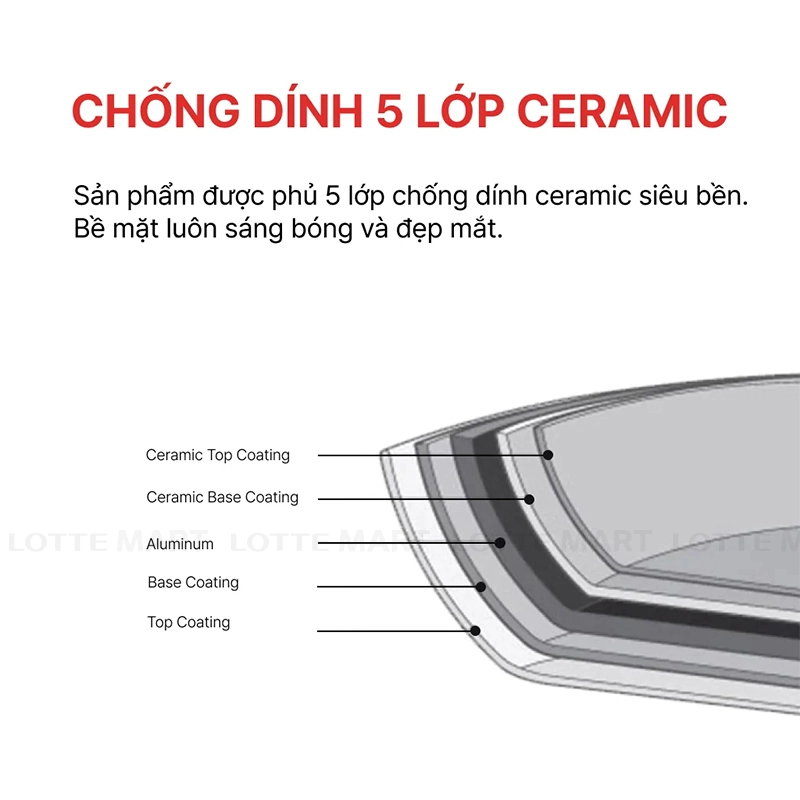 - Lòng chảo được phủ 5 lớp chống dính Ceramic.