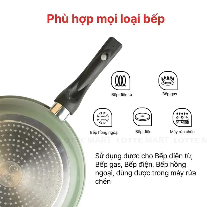 - Đáy từ bằng Inox 430, thích hợp nhiều loại bếp: Điện từ, hồng ngoại,...